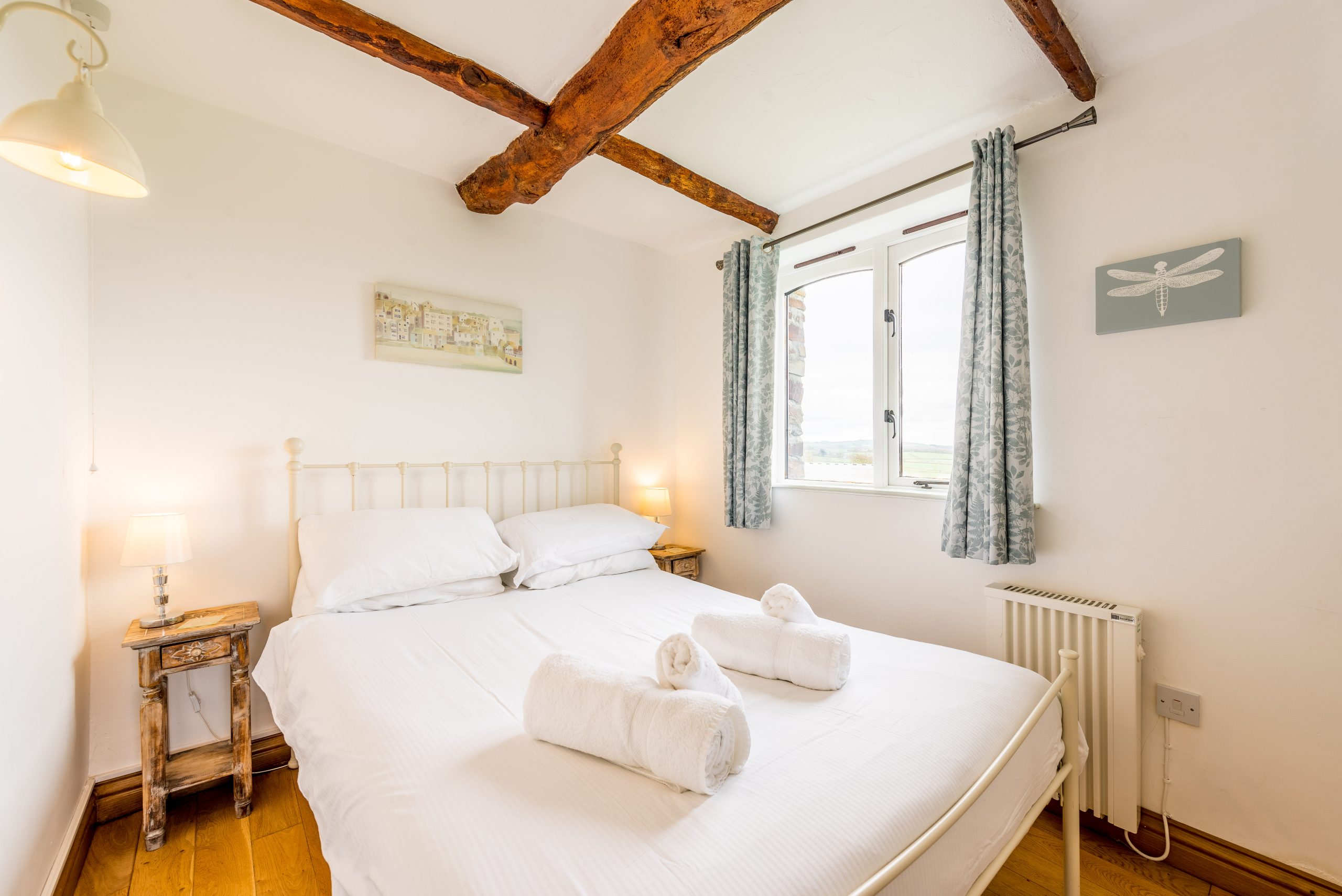 Nook cottage is one of our quiet, cosy cottages for two. It is part of a beamed barn conversion overlooking our fields. The Nook is at the end of the row of cottages for two and has uninterrupted views over the fields down to the sea. Outside seating is provided on the lawn outside the cottage. Described by some of our guests as “a perfect place to chill, beautiful surroundings and view, and a brilliant base to explore”, the Nook is our smallest cottage, tucked away in our courtyard.